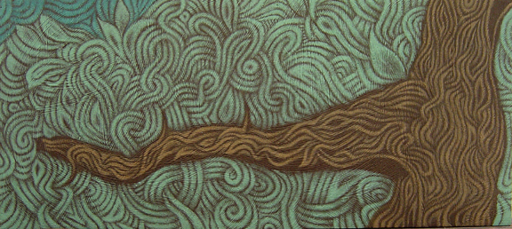 » “Oliphorest Tree Bird”, acrylic on wood, 36″ x 16″