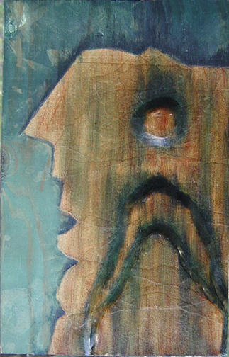 » “Peninsula People”, acrylic on papier mache and wood, 16″ x 30″