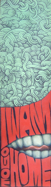 “HOMESICK 2”, acrylic on wood, 2′ x 4′, OWNED: Kassel Private Collection